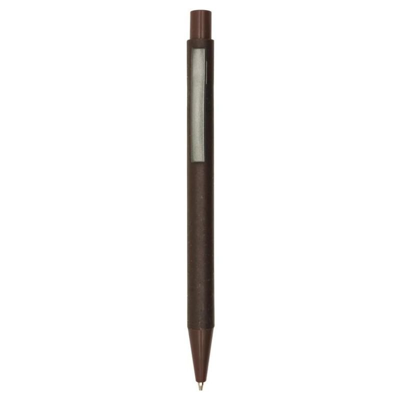 A ballpoint pen with barrel made from 40% coffee fiber material. Coffee fiber is a circular material made from waste generated in coffee production. Blue ink.